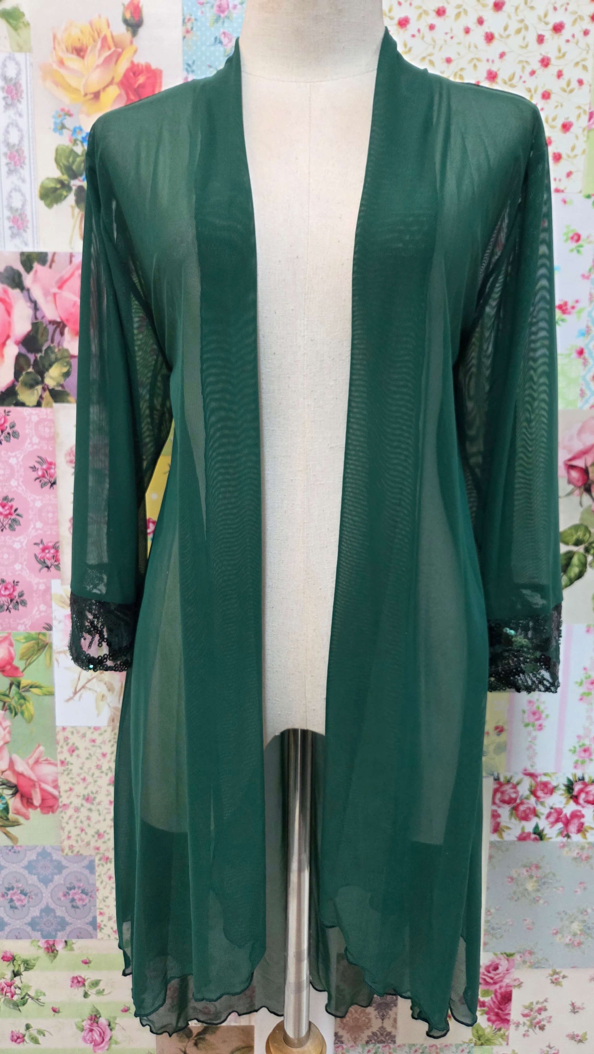 This elegant emerald green chiffon jacket features sequined trim along the 3/4 sleeves, adding a refined sparkle to your look. It includes a matching camisole crafted from the trim’s fabric, ensuring a cohesive and polished ensemble. Paired with comfortable bonbon pants featuring an elastic waistband, this 3-piece set offers both style and ease. Ideal for special occasions, it combines sophisticated detailing with effortless wearability.