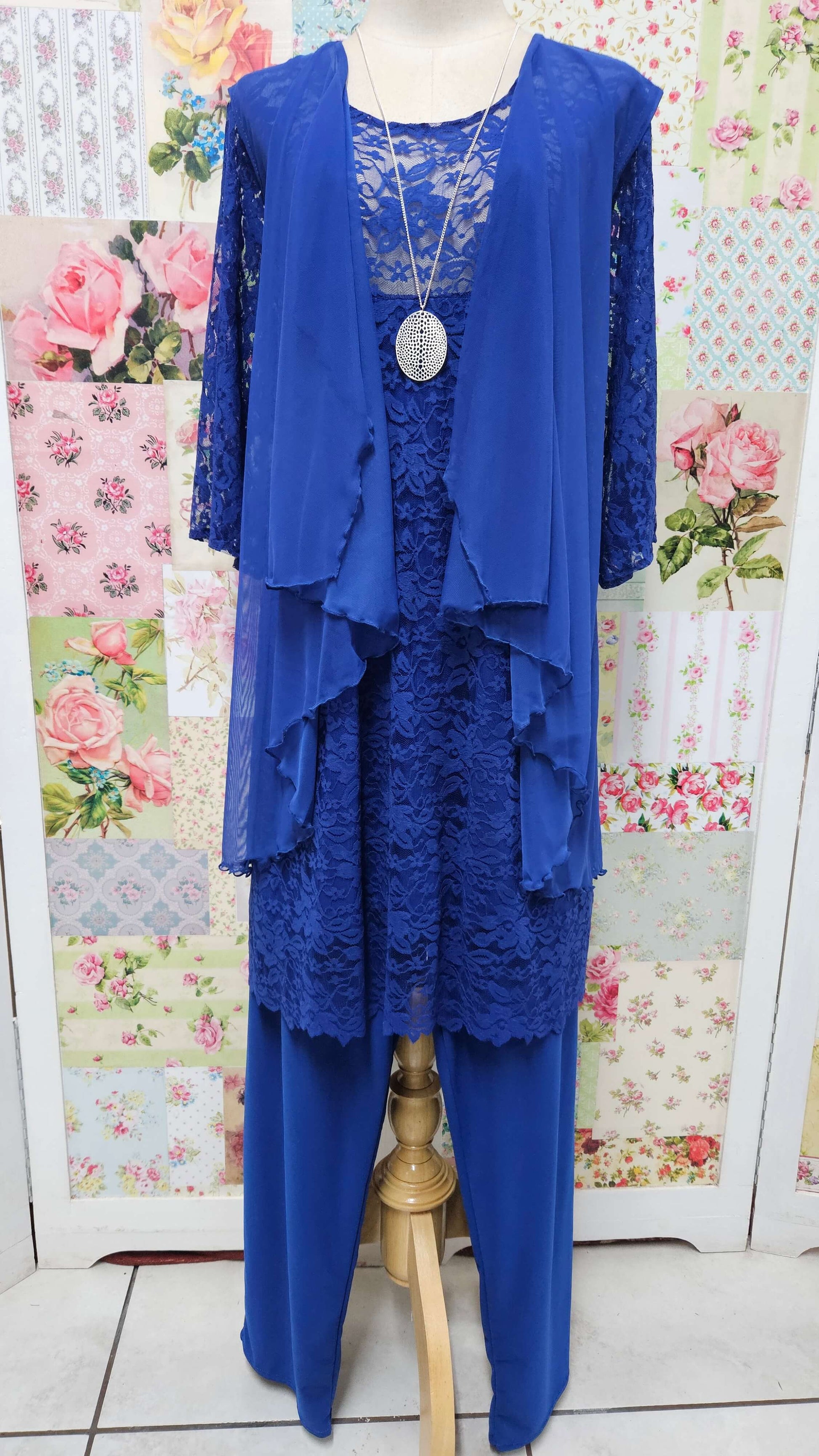 Elevate your special occasion outfit with our Royal Blue 3-Piece Pants Set. This stunning ensemble features a bonbon pants with elastic waistband for comfort, paired with a lace camisole with 3/4 sleeves for an elegant touch. Complete the look with a sleeveless mesh waterfall gilet. Perfect for any formal event.
