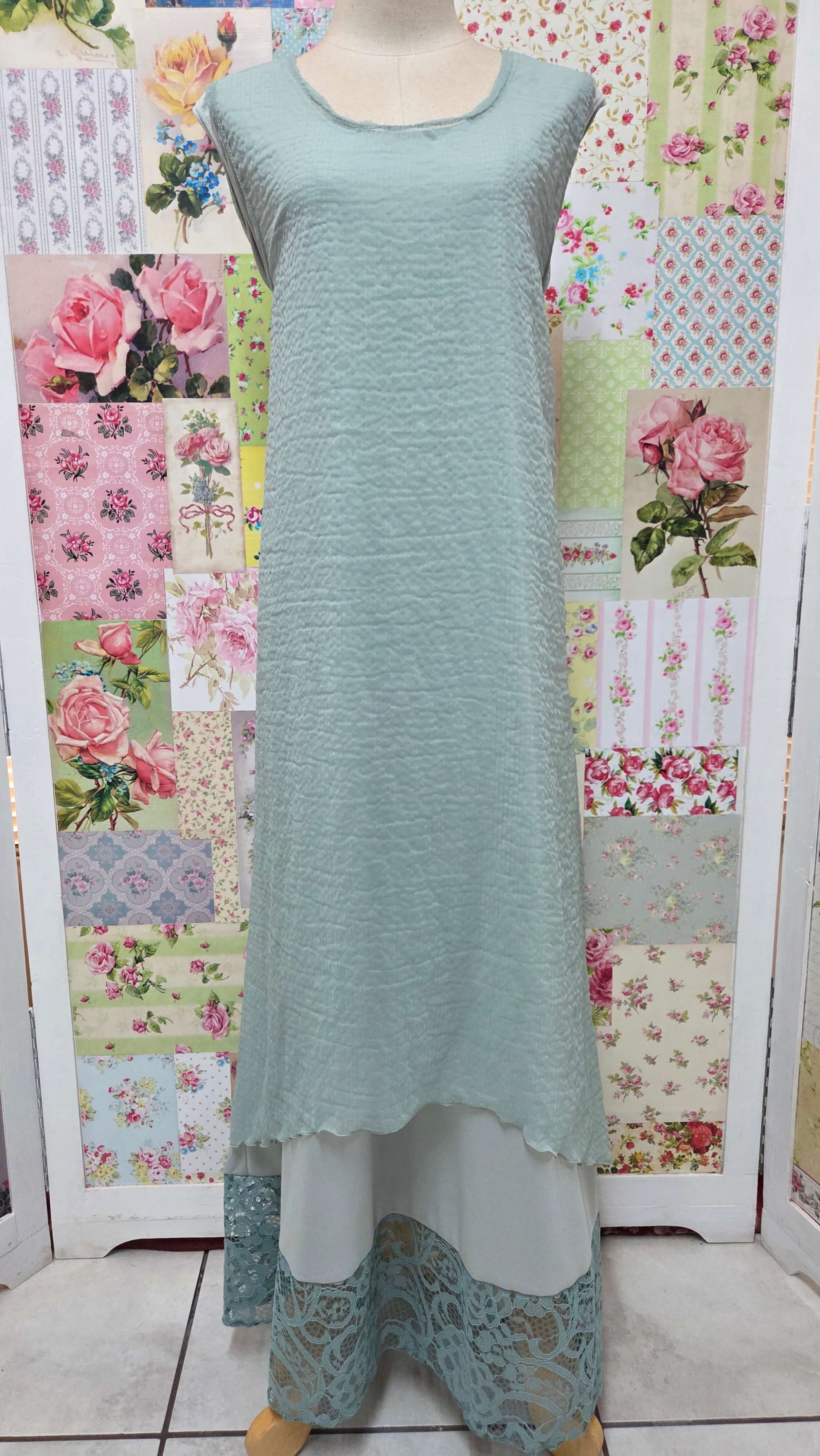 Elevate your special occasion wardrobe with this sophisticated sage green dress set. Crafted from a refined blend of lace mesh and flowing chiffon, this piece combines delicate detailing with graceful movement. The soft, muted sage tone offers versatility for weddings, garden parties, and formal events, while the layered construction creates dimension and visual interest. Perfect for those seeking an elegant, understated look that commands attention through quality and design rather than bold statements.